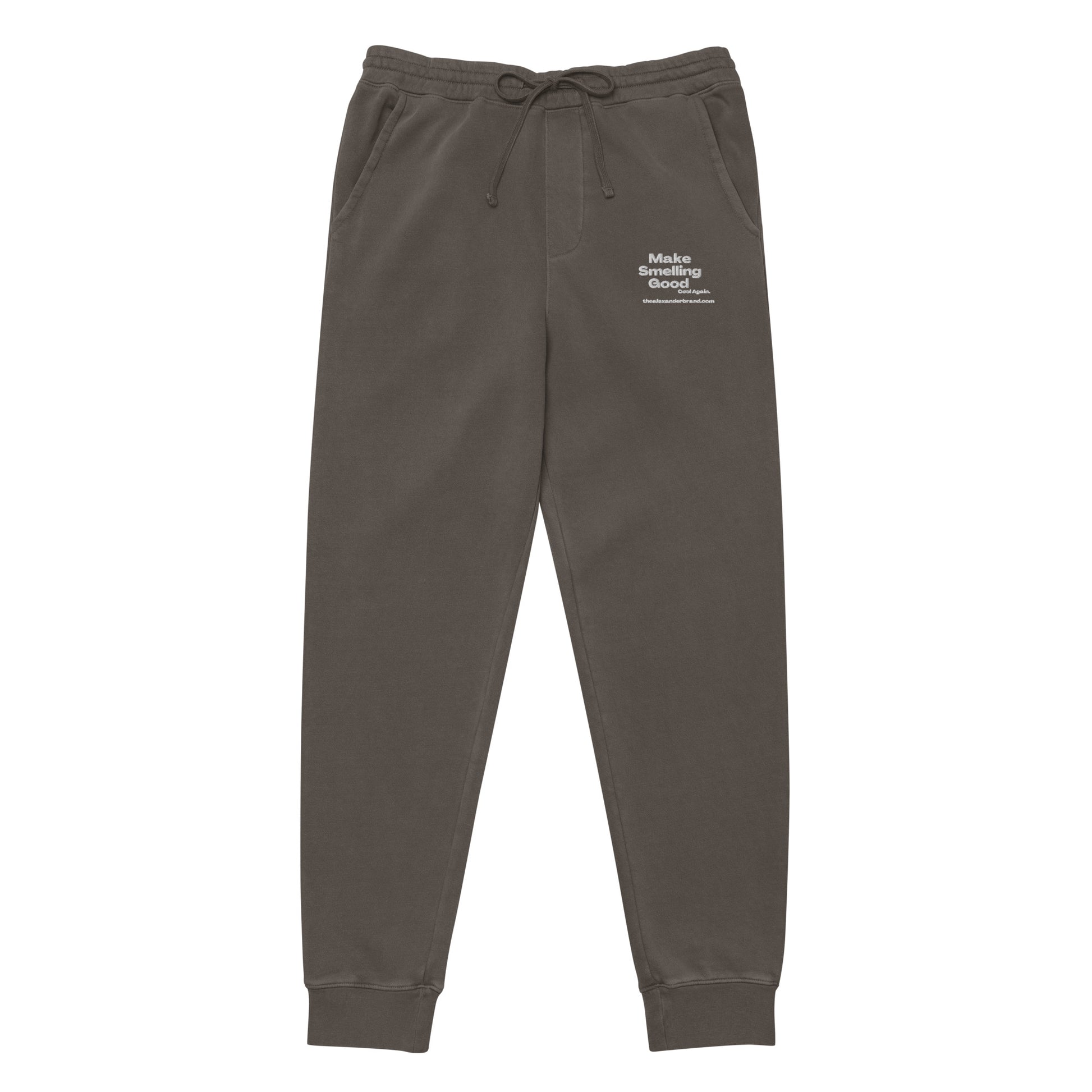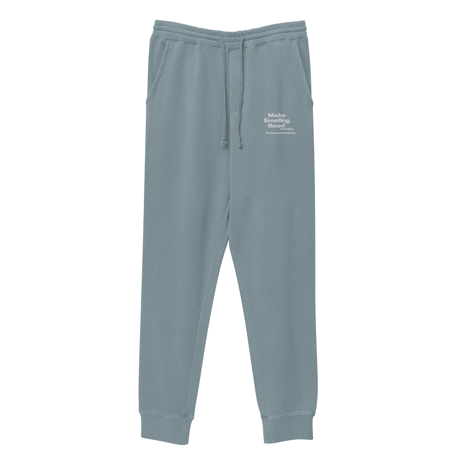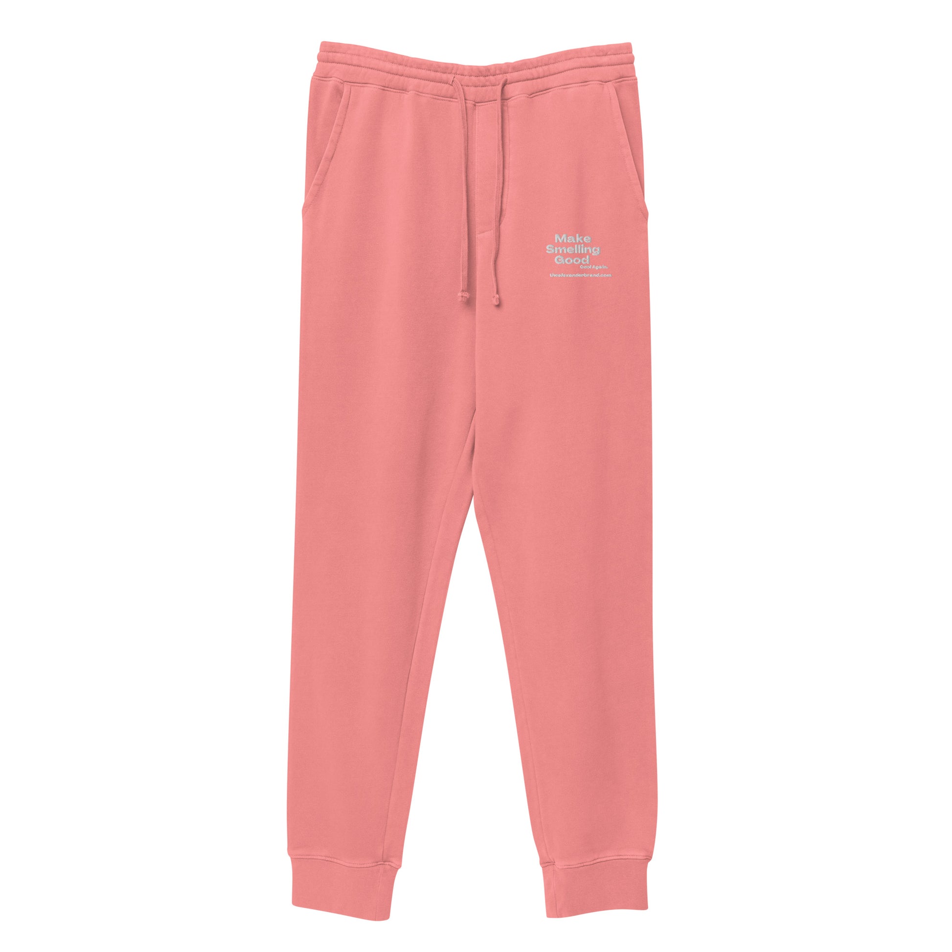 Consigue el estilo informal de las celebridades para tus ratos libres con nuestros pantalones deportivos Make Smelling Good Cool Again. El proceso de teñido en prenda hace que los pantalones deportivos parezcan descoloridos y garantiza un tono único para cada par. Los pantalones deportivos tienen dos bolsillos en la parte delantera y uno en la trasera, y cordones ajustables para un ajuste seguro alrededor de la cintura.